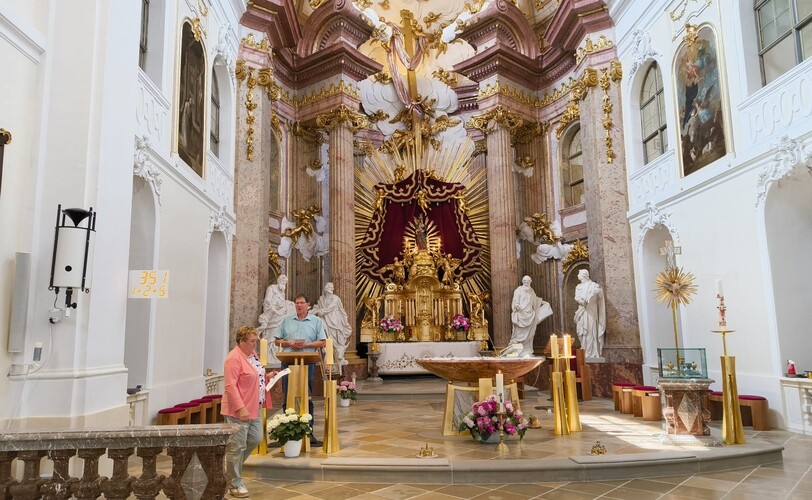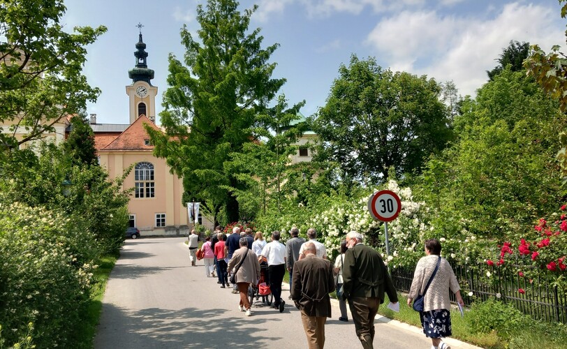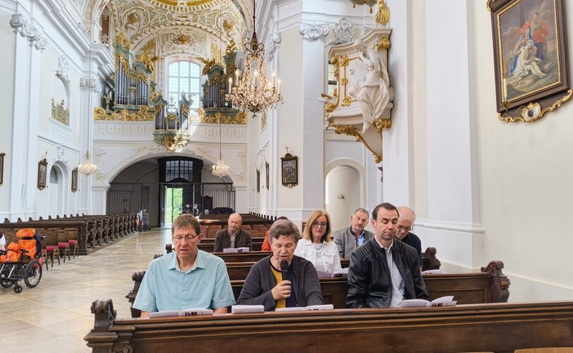 Am Pfingstmontag, den 9. Juni 2025 versammeln sich vor der Wallfahrtskirche Heiligenkreuz-Gutenbrunn über 20 Mesnerinnen und Mesner um in einer stillen Prozession in die Kirche einzuziehen. Nach der Begrüßung durch unsere Mesnerin aus Heiligenkreuz Susanne Jilch übergibt sie das Wort an Diözesanleiter Richard Wöginger.