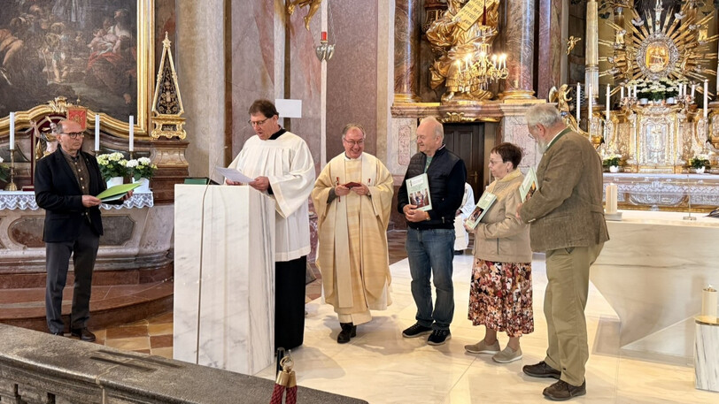 Jedes Jahr um den 21. April, dem Gedenktag dieses Heiligen, der als Patron der St. Pöltner Mesner Gemeinschaft angerufen wird, versammeln sich ca. 80 Mesnerinnen und Mesner aus der ganzen Diözese zu einer gemeinsamen Wallfahrt in Maria Taferl. Heuer stand diese Wallfahrt unter zwei besonderen Gesichtspunkten. Einerseits haben wir das Gedenken des am 7. April 2026 verstorbenen Prälat Josef Wansch begangen. Er war von 1969 bis 2018, als fast 50 Jahre lang, geistlicher Assistent der Mesner Gemeinschaft der Diözese St. Pölten. Seine Charaktereigenschaften, die ihm geprägt haben, durften wir oft erkennen. Er hatte immer ein offenes Ohr für unsere Anliegen, seine Meinung hat er in vielen Situationen kundgetan. Durch seine Aushilfen in unserer Diözese hatte er zu vielen Mesnerinnen und Mesnern guten Kontakt und er wusste den Mesnerdienst immer sehr zu schätzen. Bei unserer Wallfahrt haben wir in Dankbarkeit für ihn eine Kerze entzündet und seiner gedacht.