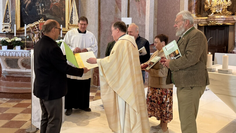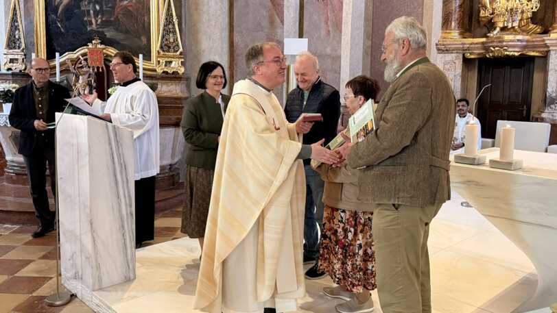 Diözesanleiter Richard Wöginger überreichte ihnen je ein Fotobuch mit ganz persönlichen Erinnerungen an die vielen Jahre der aktiven Zeit in der Diözese. Er dankte ihnen ebenfalls für die Mitarbeit bei der Österreichischen Mesner Gemeinschaft.